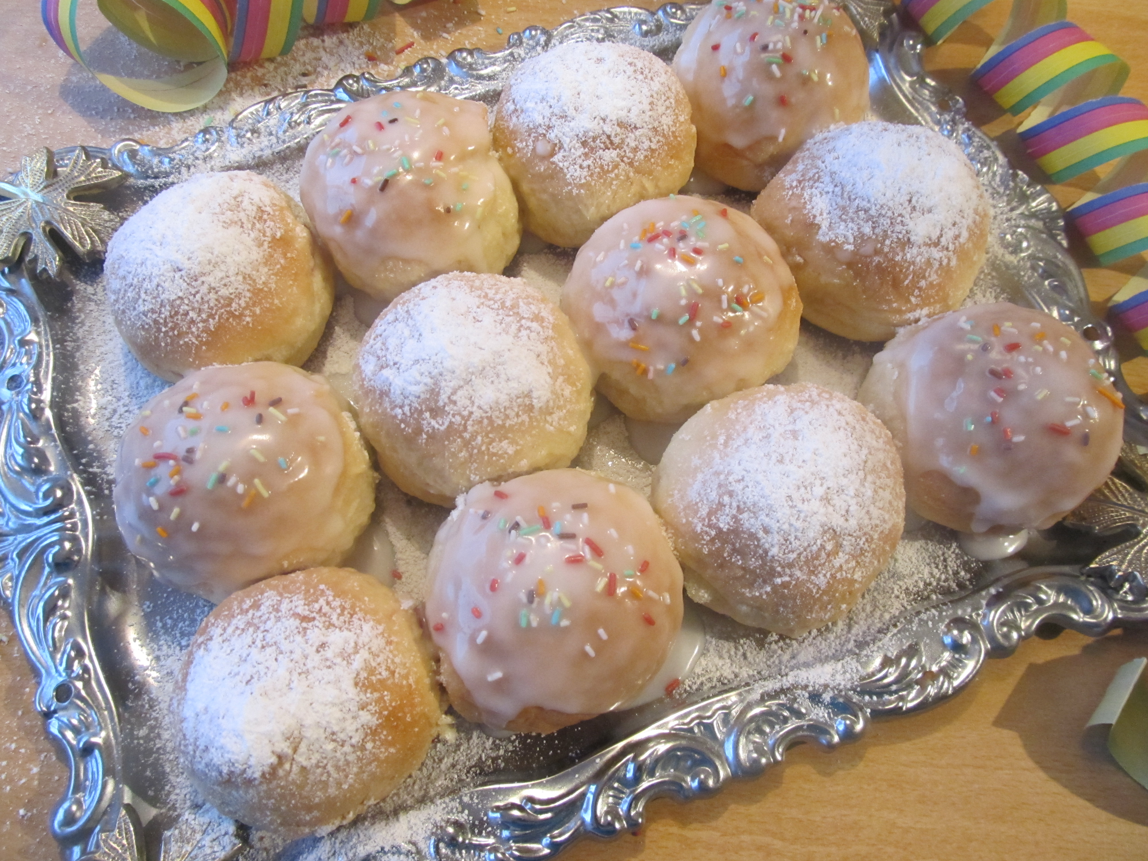 Auch heute noch werden Unmengen von Krapfen gegessen. Das frittierte Gebäck aus Hefeteig wird mit den unterschiedlichsten Füllungen und Garnierungen angeboten z.B. Traditionell mit Marmelade oder mit Vanille-Sahne, Schokopudding, Nougat, Eierlikör-Sahne, Vanillepudding, Karamel-Sahne, Pflaumenmus, Schwarzwälder-Kirsch,… es bleiben keine Wünsche offen… da ist doch für jeden etwas leckeres dabei 😉