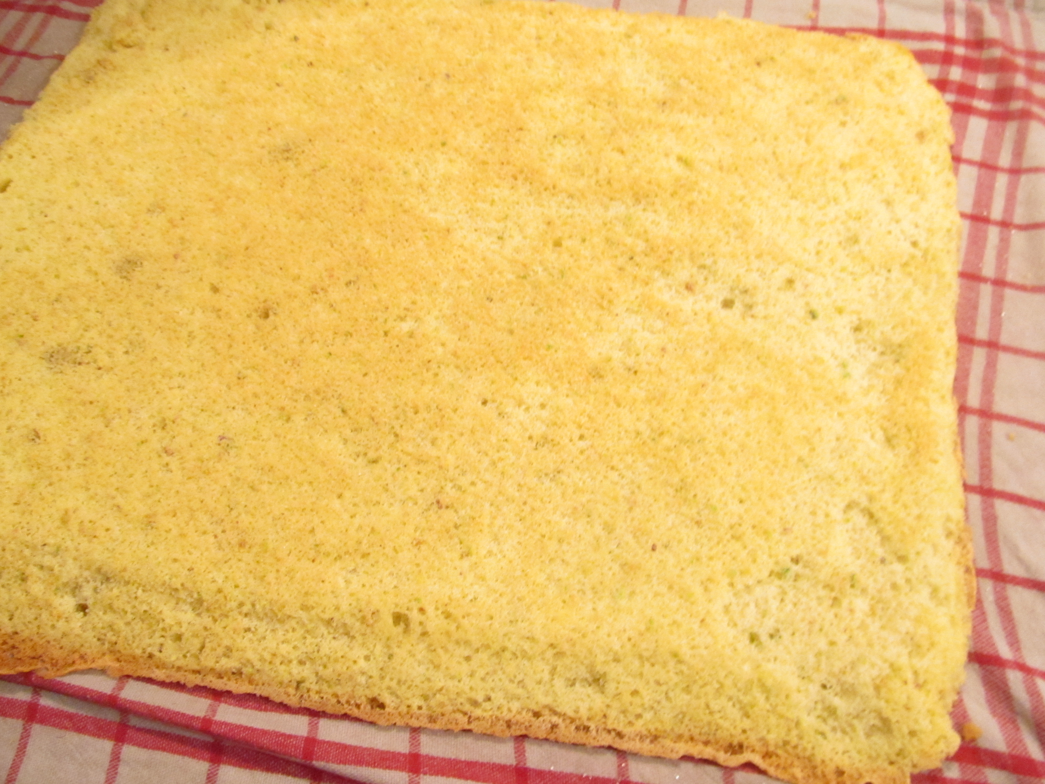 - Die gebackene Roulade auf ein feuchtes gezuckertes Geschirrtuch legen.