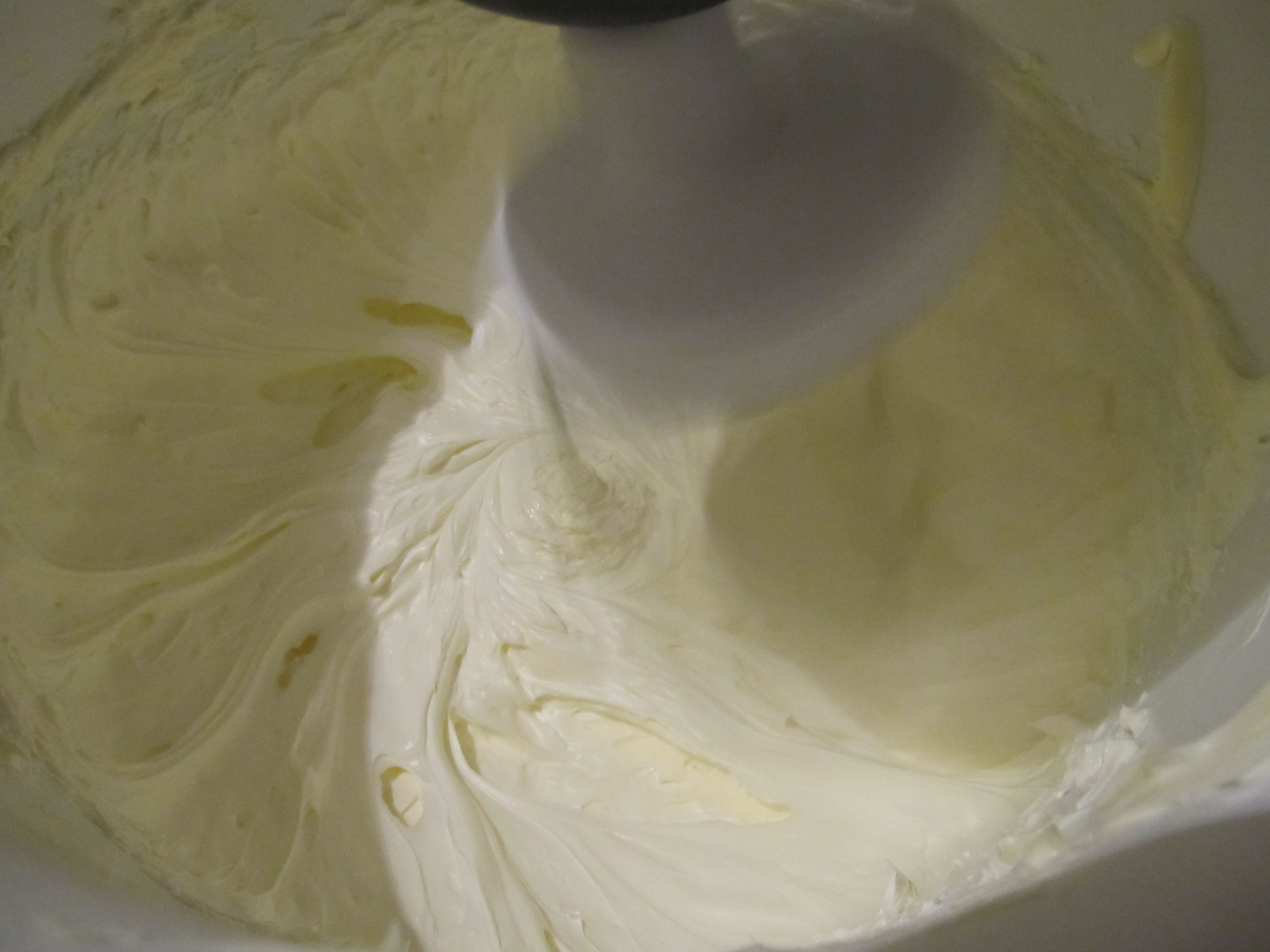 - Die Butter weiß schaumig schlagen. Dann den abgekühlten Pudding unterrühren.