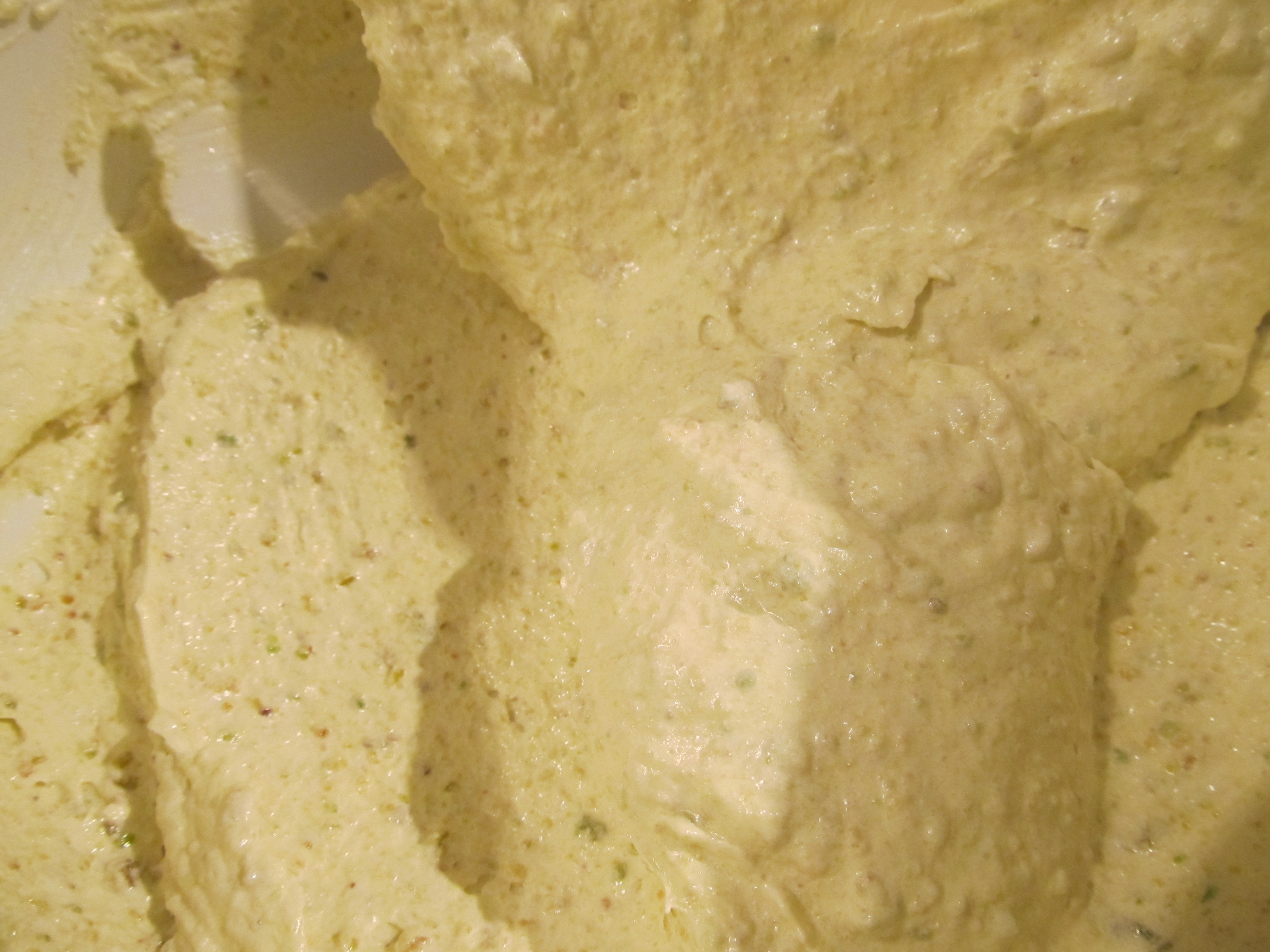 - Das Mehl und das Backpulver sieben und mit den Pistazien langsam unter den Teig heben.