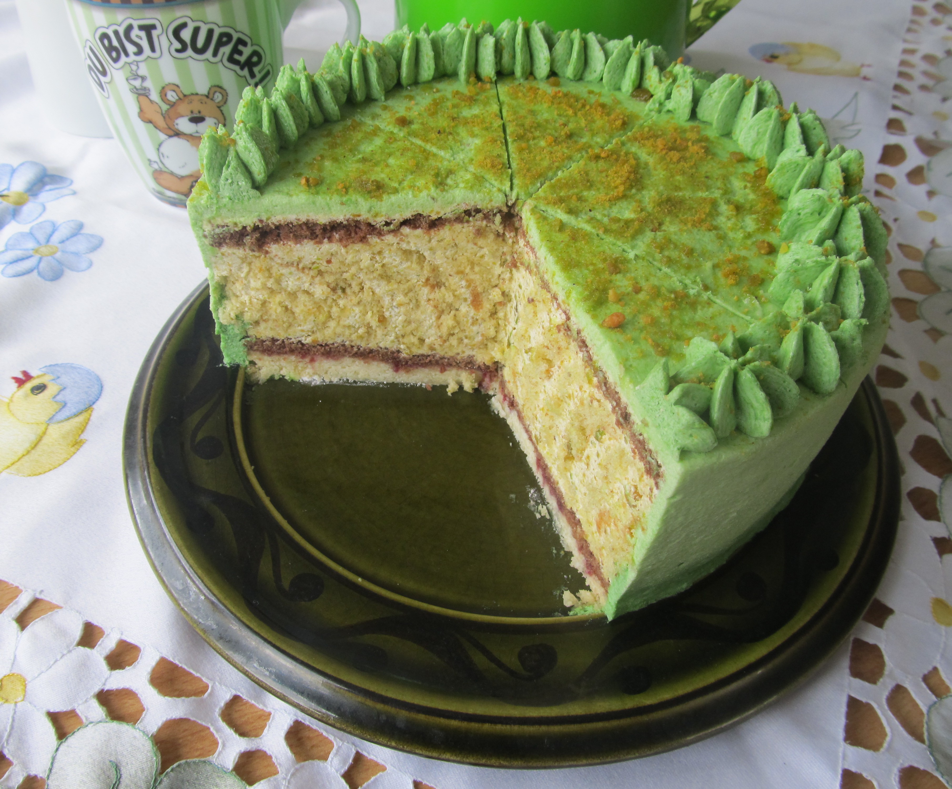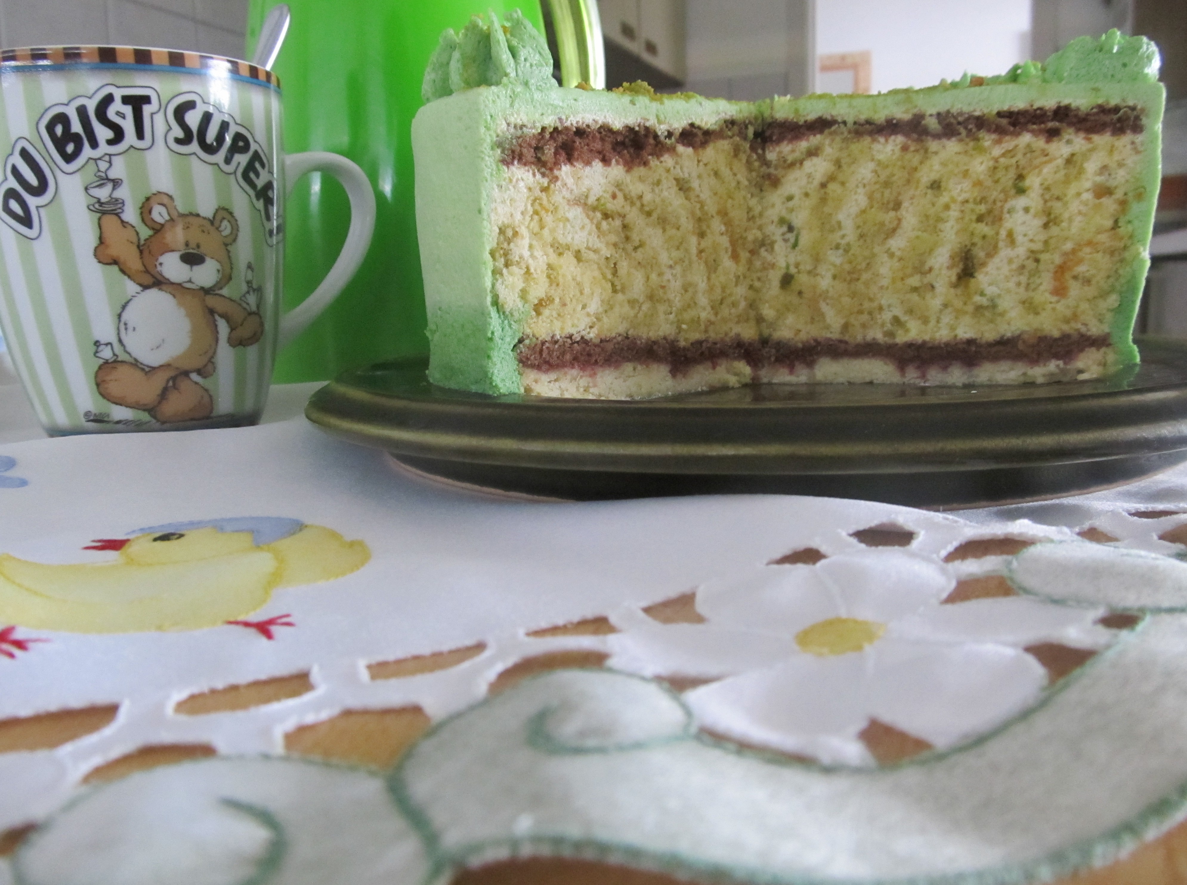 Man kann mit Pistazien auch wunderschöne Leckereien backen. Und da sie ja nicht gerade ein Schnäppchen sind… sondern man für 200g schon mal fast 5€ hinlegt… gönnen wir uns mal zu ihrem Ehrentage ein besonderes Stück Luxus und verzehren ein königliches Stück Pistazientorte… und füllen uns für einen Moment wie die Könige der Welt 😉