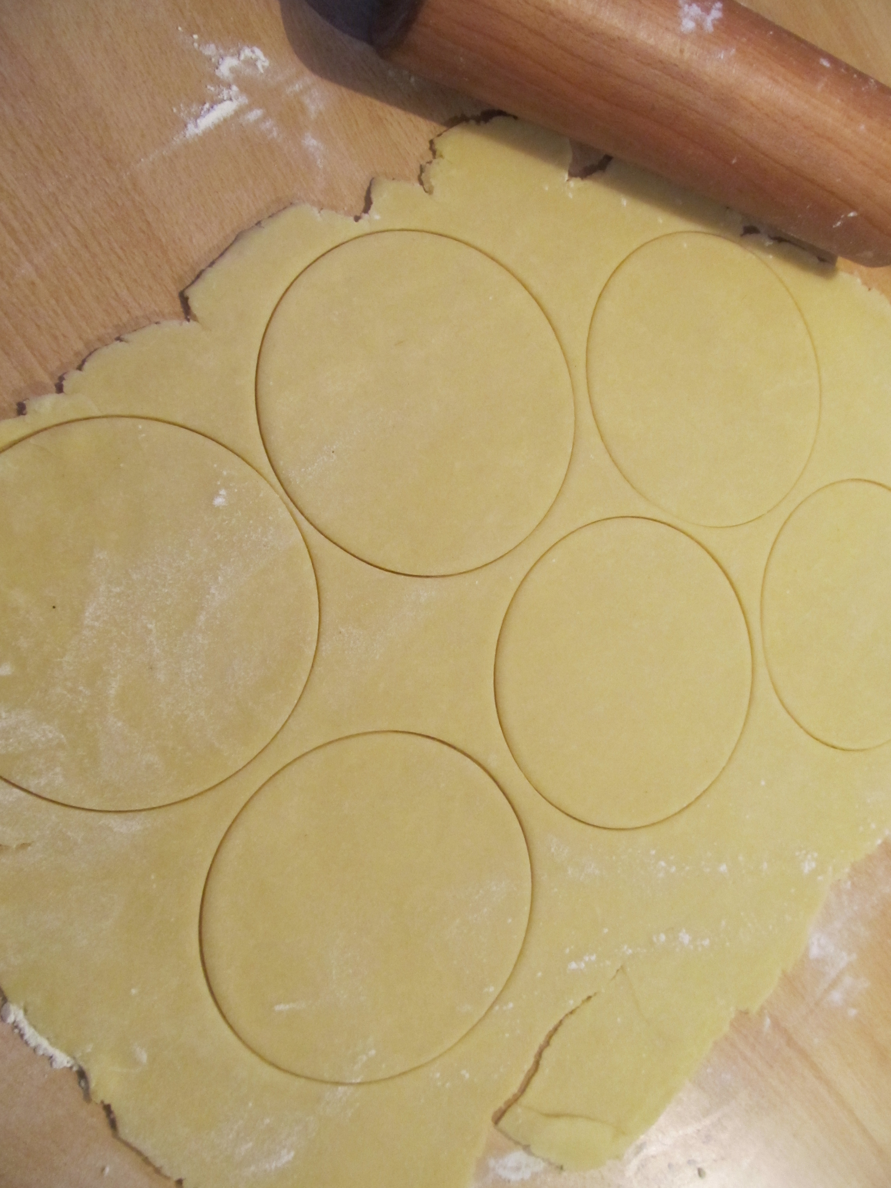 - Die Ränder mit etwas Wasser anstreichen und die kleinen Kreise als Deckel drauf setzen und andrücken.