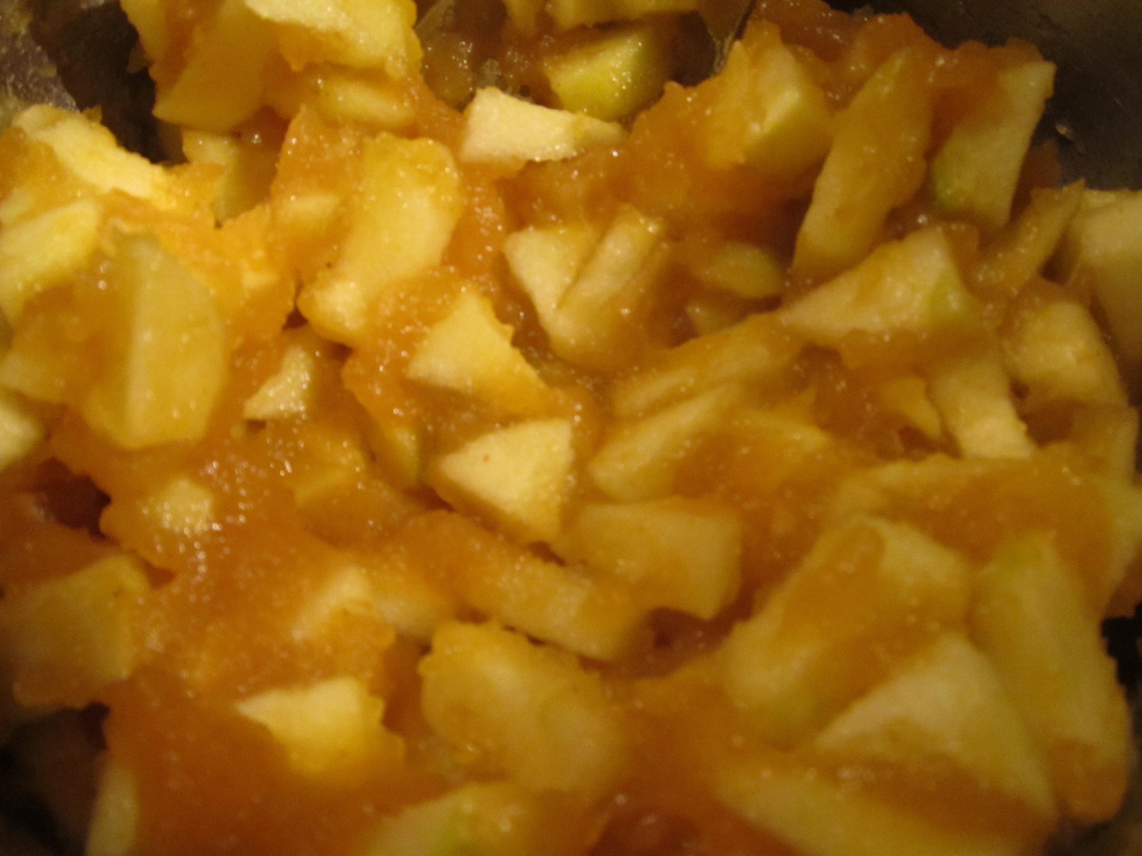 - Wasser dazu geben und dann die Äpfel dazu geben.