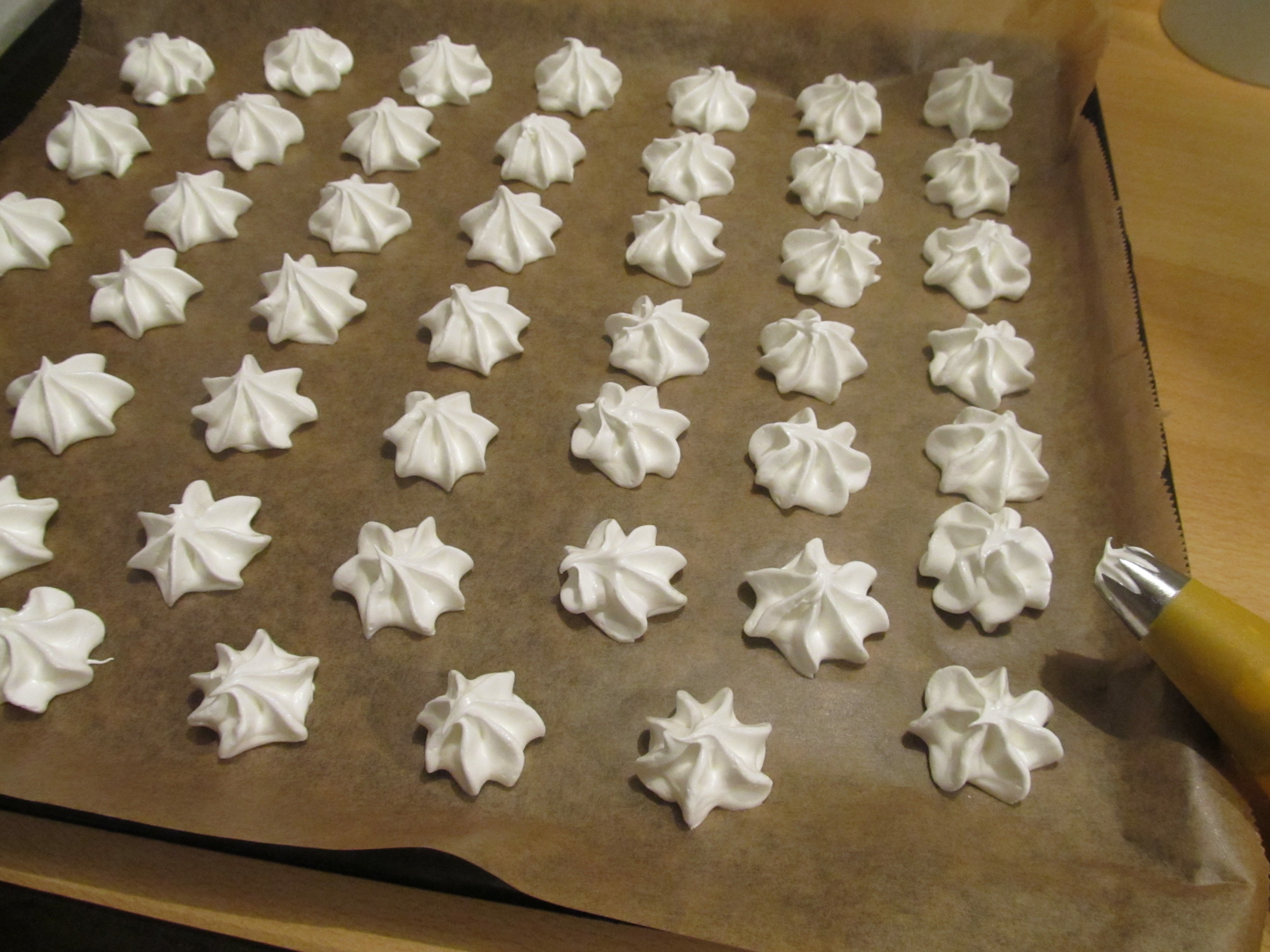 Verblüffend ist doch wie aus dem schleimigen Eiweiß und dem feinkörnigen Zucker eine fluffige Baiser Masse wird.