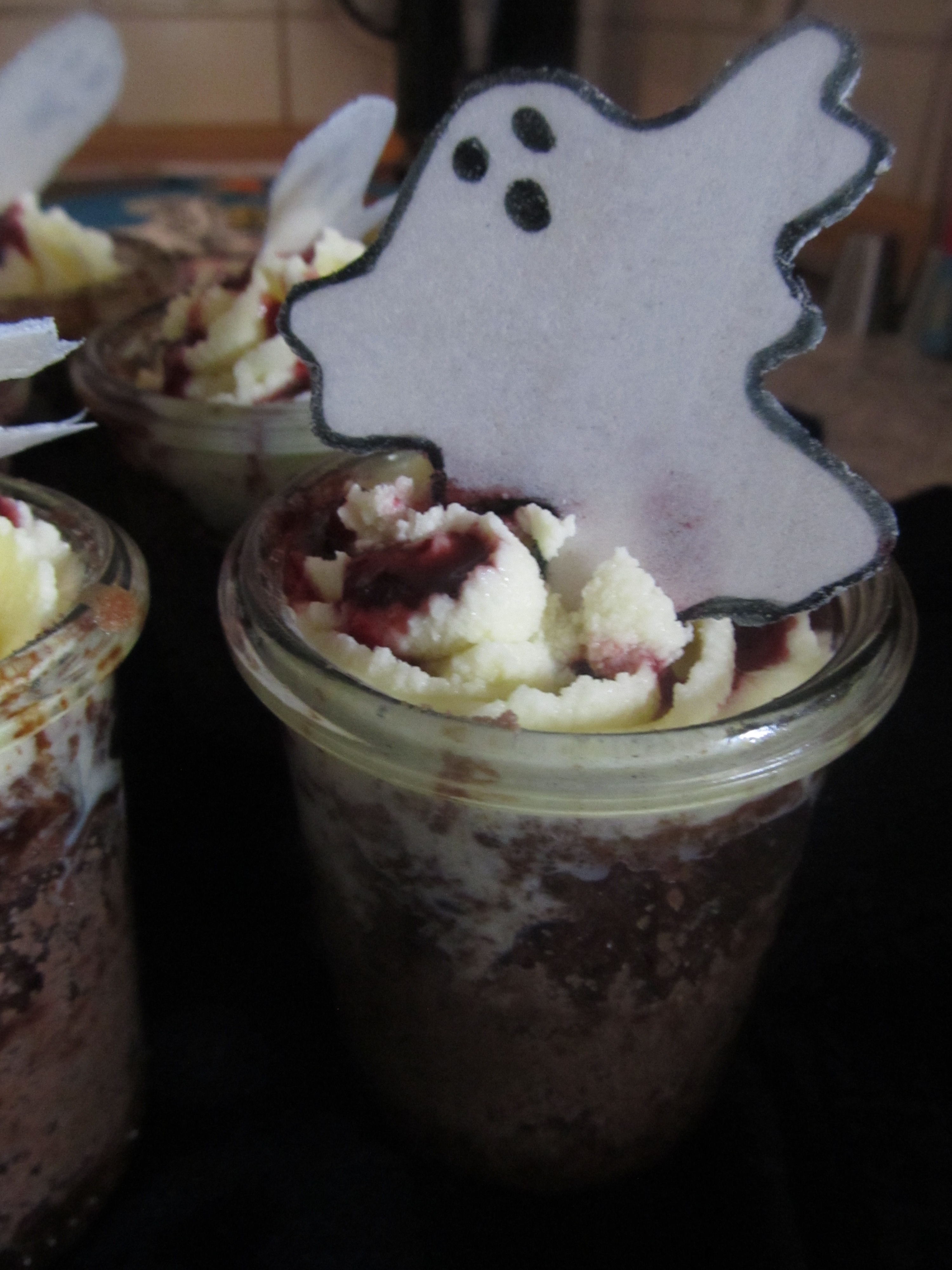 Aber nun genug von Kelten, Märtyrer und Bräuchen geplaudert… hier ist mein Rezept für 5 kleine Death Chocolate Cakes im Glas für euch.