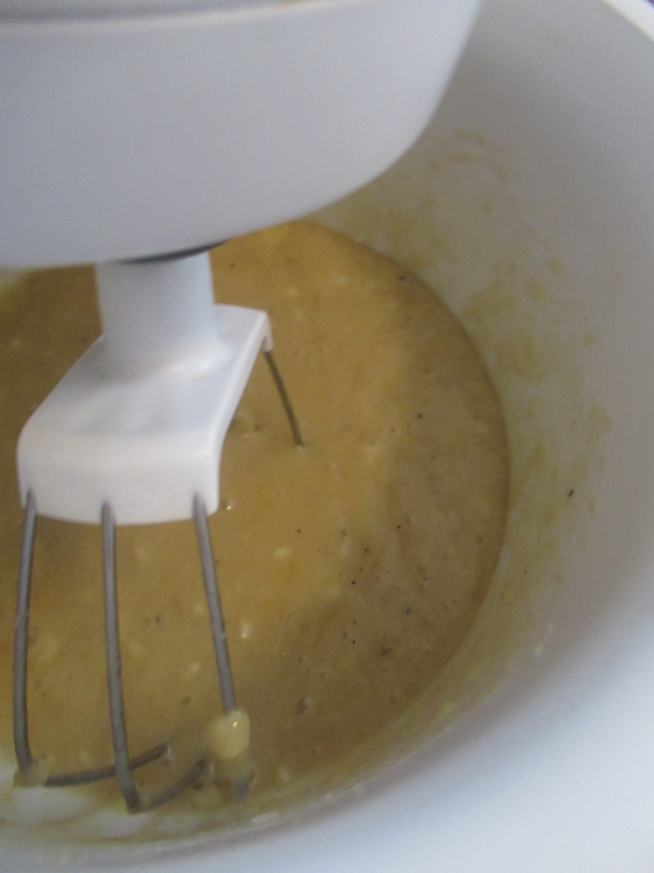 - Das Dinkelvollkornmehl mit dem Backpulver mischen und ca. 2min lang unterrühren.
