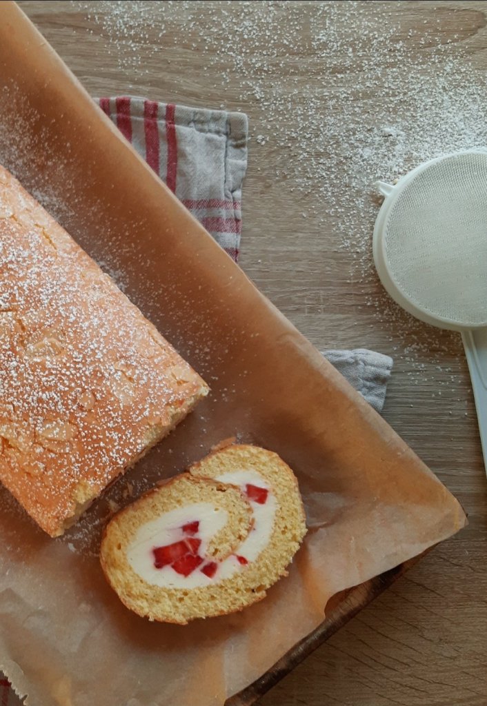 Er liebt Erdbeeren in jeder erdenklichen Form als Kuchen. Ich musste mich wirklich ranhalten um noch ein Stückchen dieser leckeren Biskuitroulade abzubekommen. Sonst hätte er sie komplett alleine verspeist. Das mag wirklich was heißen… denn er ist eigentlich was Kuchen angeht immer etwas heikel 😅