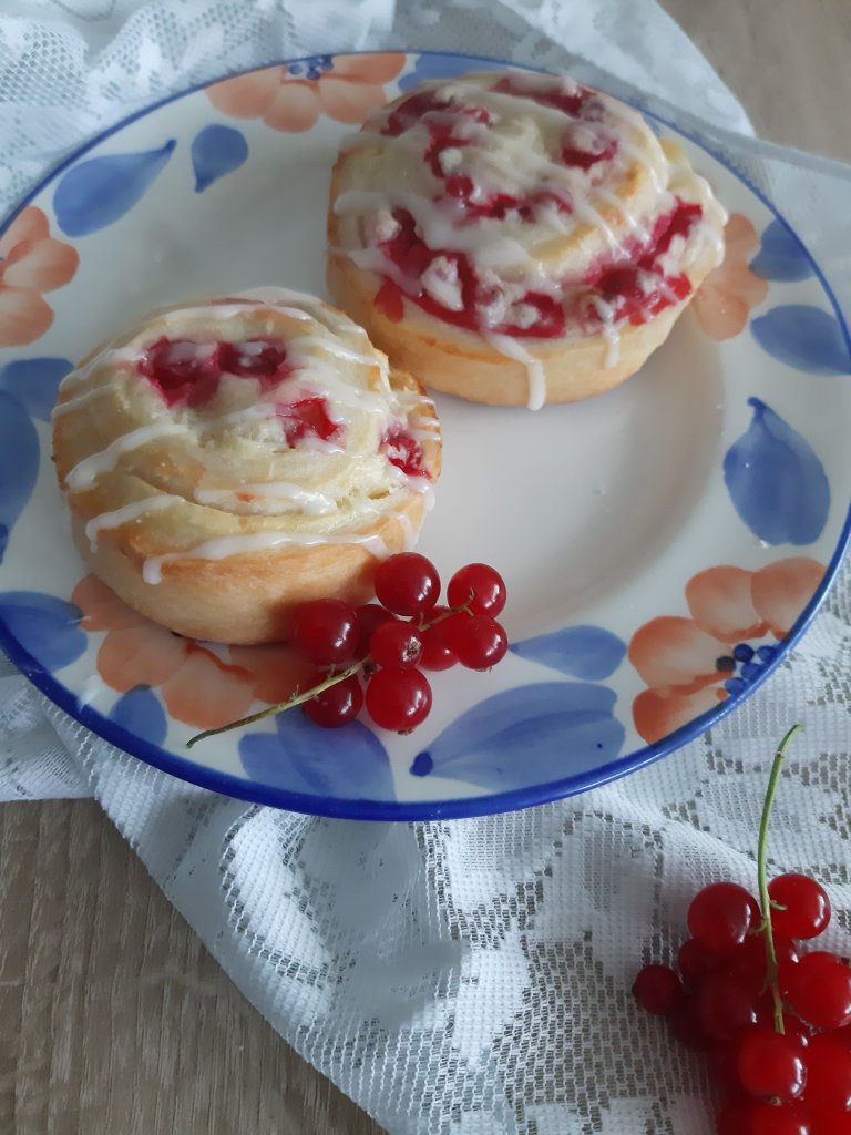 - Die Schnecken werden bei 200°C auf der zweitobersten Schiene für 25min goldbraun gebacken. Durch den Saft der Johannisbeeren bekommen sie sonst am Boden eine zu dunkle Färbung.