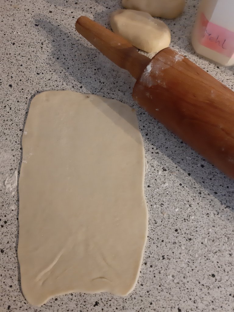 - Alle Zutaten miteinander verkneten und den Teig 30min ruhen lassen.