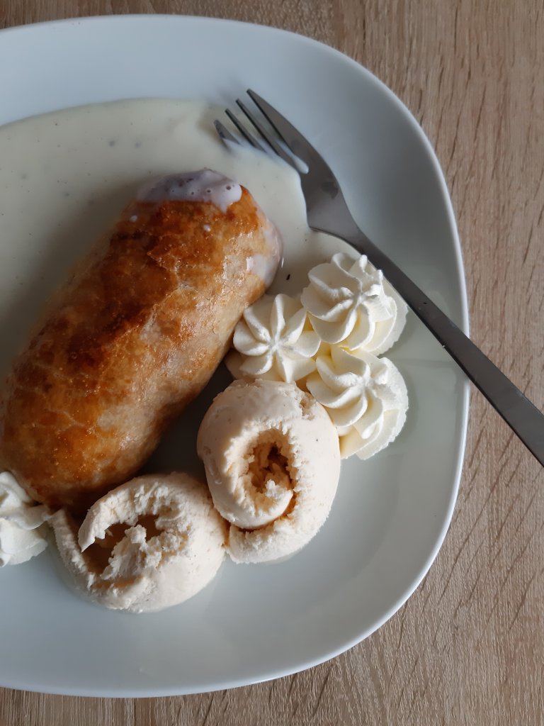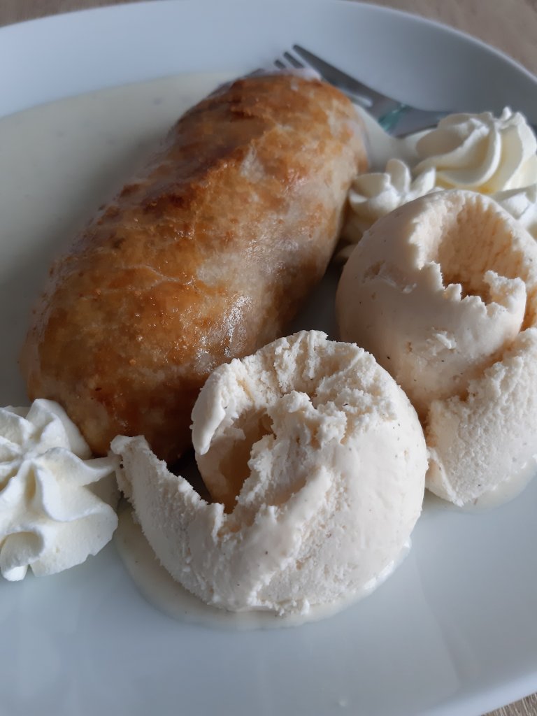 Aber das ist kein Grund die Nase unter die Bettdecke zu stecken. Wir backen uns einfach einen herrlich leckeren Seelenwärmer 🙂 Einen österreichischen Apfelstrudel mit allem… mit selbst gemachter Vanillesoße, köstlichem Bourbon Vanilleeis und frischer aufgeschlagener Sahne. Das absolute Geschmackserlebnis.
