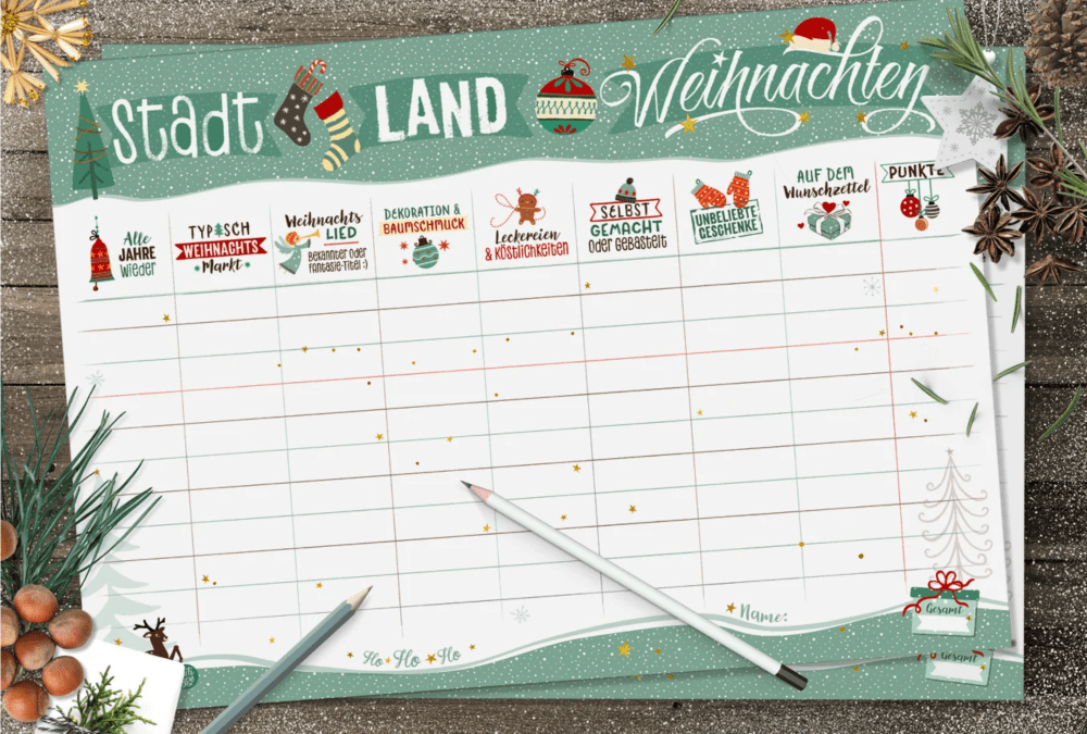 Das Spiel Stadt, Land, Weihnachten oder Stadt, Land, Tod sind mal eine etwas andere Varianten als das Stadt, Land, Fluss wie man es ja üblich kennt. Ich habe Stadt, Land, Tod schon selber mit Freunden gespielt und muss sagen, dass das Spiel sehr viel Spaß gemacht hat und so lustig war. Soviel habe ich schon lange nicht mehr gelacht wie an diesem Abend. Kann ich zu 100% weiter empfehlen.